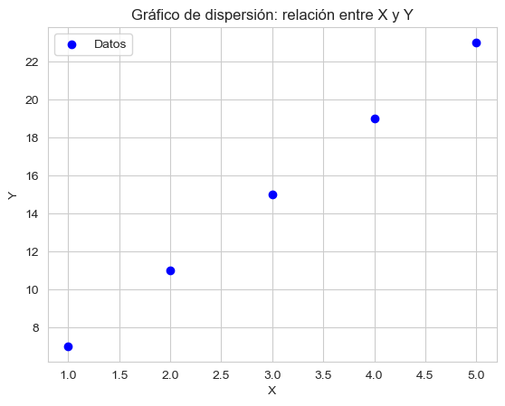plt.title('Gráfico de dispersión: relación entre X y Y')