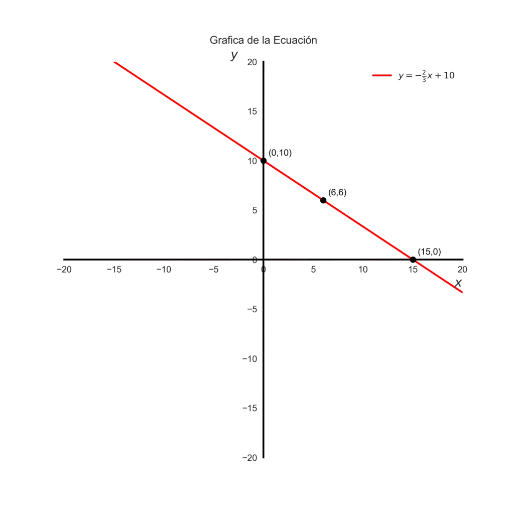 - Cuando \(x=0\): \(y=10\) –> la recta pasa por el punto \((0, 10)\).