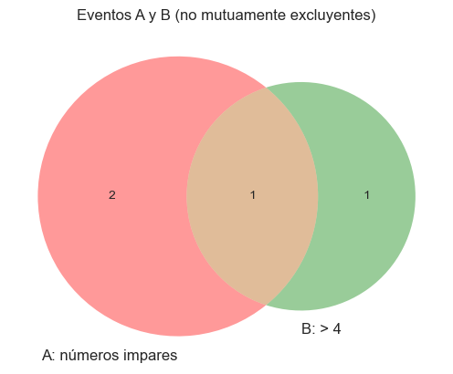 plt.title("Eventos A y B (no mutuamente excluyentes)")